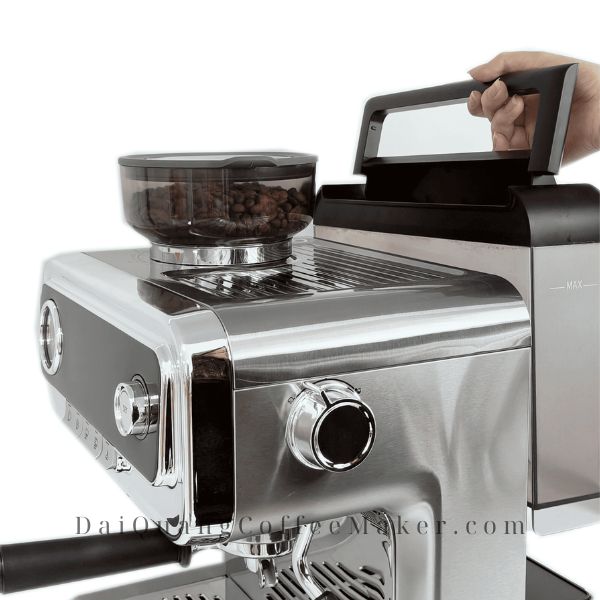 Bình chứa nước có thể tháo rời với dung tích lớn giúp nâng cao trải nghiệm sử dụng máy pha cà phê, phù hợp cho gia đình đông người hoặc văn phòng nhỏ.