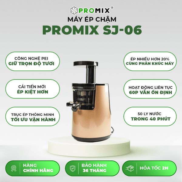 Trong thế giới hiện đại ngày nay, việc chăm sóc sức khỏe và duy trì một chế độ ăn uống lành mạnh đang trở thành ưu tiên hàng đầu của nhiều người. Một trong những cách đơn giản và hiệu quả nhất để bổ sung vitamin và khoáng chất cho cơ thể chính là thông qua nước ép từ trái cây tươi. Trong số những sản phẩm máy ép trên thị trường, máy ép chậm Promix SJ-06 nổi bật với nhiều tính năng ưu việt, hứa hẹn mang lại trải nghiệm tuyệt vời cho người sử dụng.